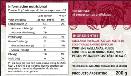 Ingredientes: La única con 70% de avellanas.