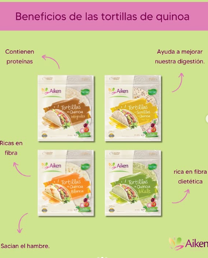Tortillas de Quinoa Integrales x 210g - Aiken, una opcion saludable y versatil para preparar wraps y burritos.