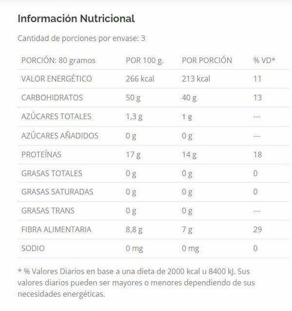 Ingredientes: Harina de poroto alubia, harina de arroz y harina de quinoa.