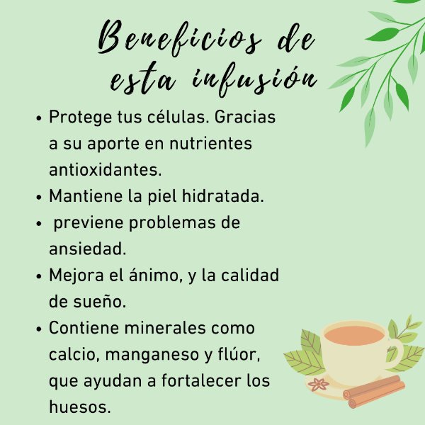 INGREDIENTES: Rooibos, canela, manzana, té verde y pétalos de caléndula