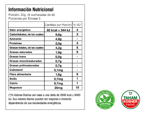 Ingredientes: Avena, almíbar, arándanos rojos, chocolate, semillas de zapallo coco rallado, semillas de girasol, semillas de chía, coco en escamas.