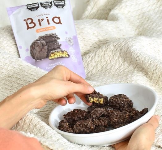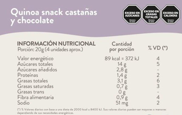 Ingredientes: Quinoa pop, Castañas de cajú tostadas saladas, Azúcar rubio orgánica, Chocolate semiamargo.